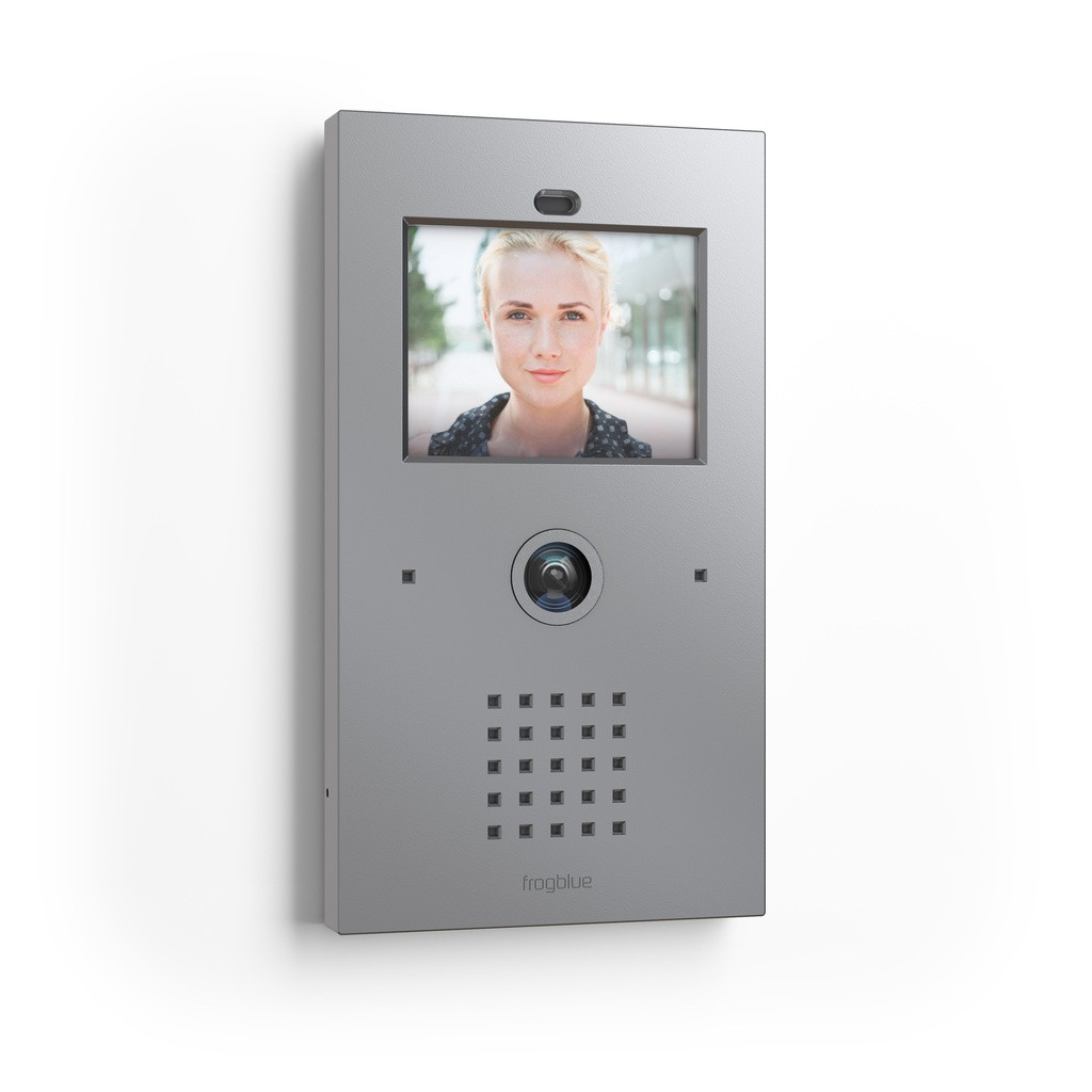 SIP-видеотерминал с полусферической камерой 180° и разрешением 8 Мп. Встроенный 3,5-дюймовый сенсорный дисплей для гибкого отображения нескольких кнопок звонка или функций (возможность многосторонней связи). Контроль доступа с помощью PIN-кода и/или RFID-интерфейса (MIFARE® DesFire® EV2). Подключение и питание по сетевому кабелю (PoE) или 24 В AC/DC через провод звонка и WLAN. Встроенное беспотенциальное реле (макс. 24 В/1 A) и 2 беспотенциальных входа. Подключение USB-C для модулей расширения. Возможности расширения через встроенный интерфейс Bluetooth® frogblue mesh. Защита от атмосферных воздействий IP54.